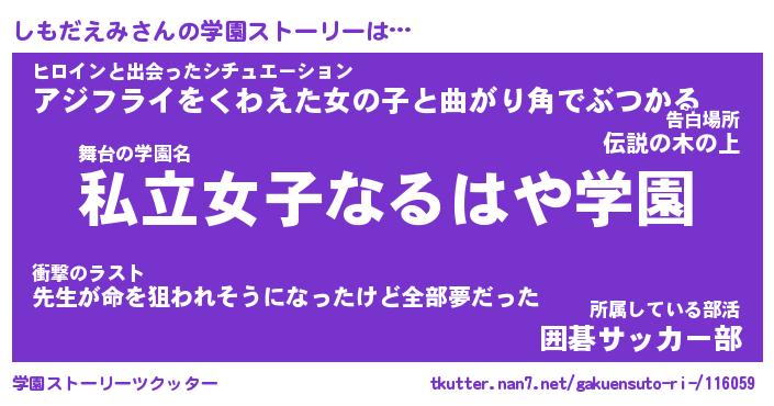 | ファンタジー風あだ名 | 『シモフェル』『エターナルシモダエミー』 |
