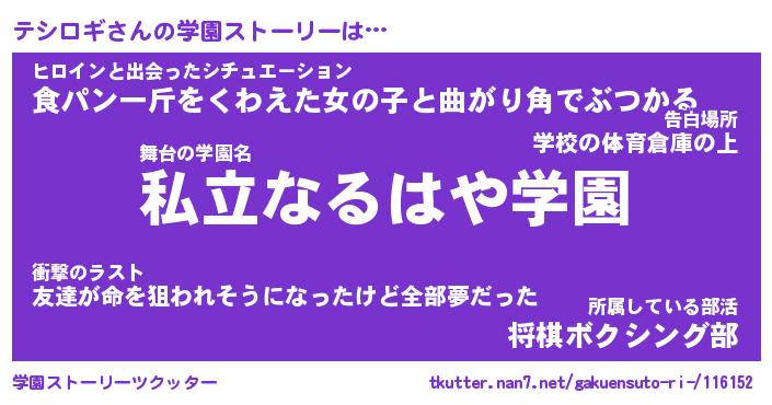 | 男性向けラノベタイトル風あだ名 | 『テシロギの憂鬱』 |