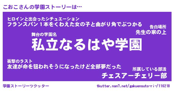 | 告白場所 先生の家の上 …「ふぃぎゅこ」 | 2月17日 06:24 |