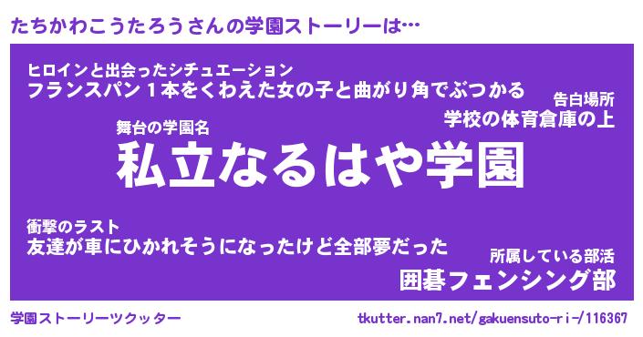 | 女子向けラノベタイトル風あだ名 | 『(仮)たちかわこうたろうのやんごとなき事情』 |