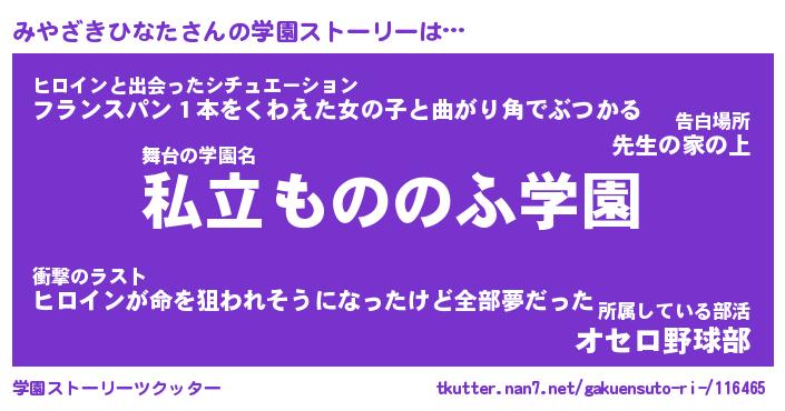 | 恥ずかしいあだ名 | 『プリティーみやざきひなた』『みやちん』 |