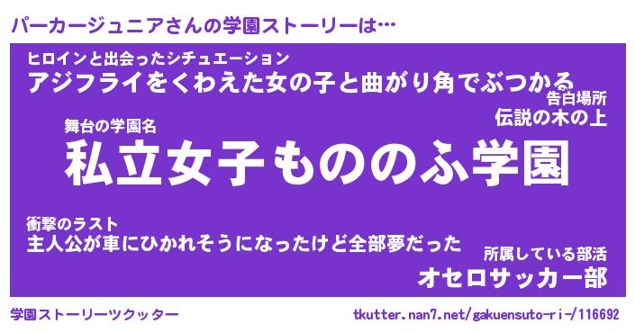 | 女子向けラノベタイトル風あだ名 | 『パーカージュニア姫と円卓の騎士』 |