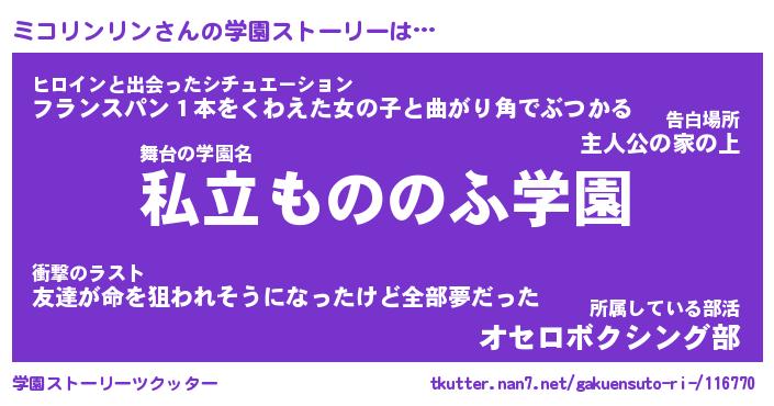 | 男性向けラノベタイトル風あだ名 | 『ミコリンリンの憂鬱』 |