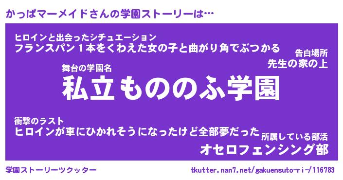 | 女子向けラノベタイトル風あだ名 | 『(仮)かっぱマーメイドのやんごとなき事情』 |