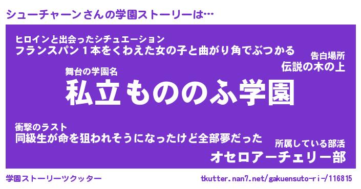 | 男性向けラノベタイトル風あだ名 | 『シューチャーンの憂鬱』 |