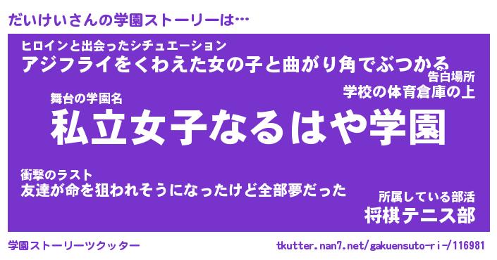 | 告白場所 先生の家の上 …「ふぃぎゅこ」 | 2月17日 06:24 |