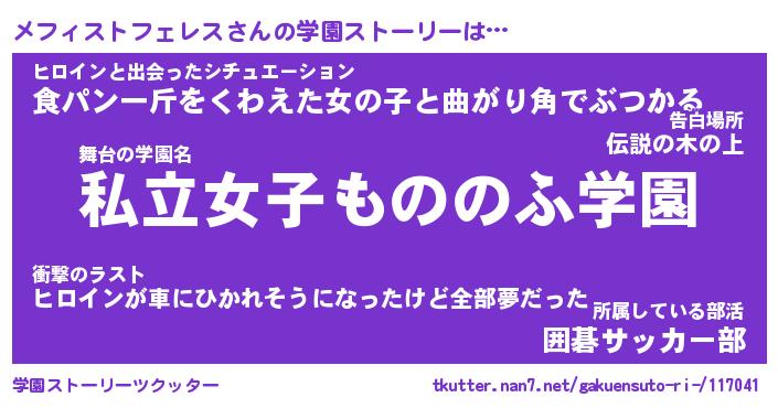 | 男性向けラノベタイトル風あだ名 | 『メフィストフェレスアートオンライン』 |