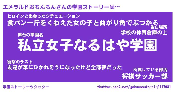| 伝説のあだ名 | 『封印されしスナイパーエメラルドおちんちん』 |