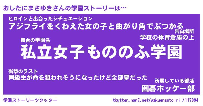 | 女子向けラノベタイトル風あだ名 | 『おしたにまさゆき姫と円卓の騎士』 |