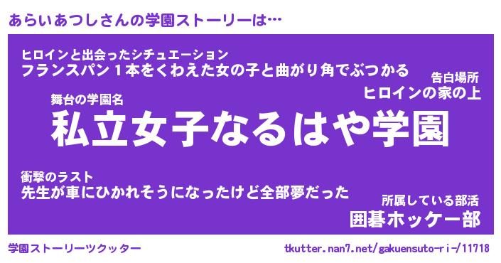 | 伝説のあだ名 | 『封印されしスナイパーあらいあつし』 |