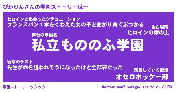 | 男性向けラノベタイトル風あだ名 | 『ぴかりんの憂鬱』 |