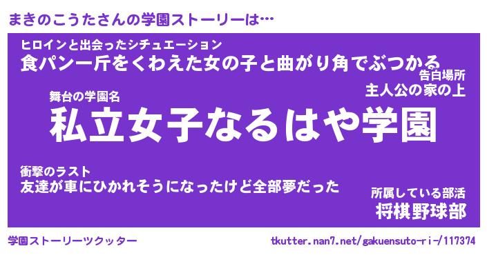 | 伝説のあだ名 | 『封印されしスナイパーまきのこうた』 |