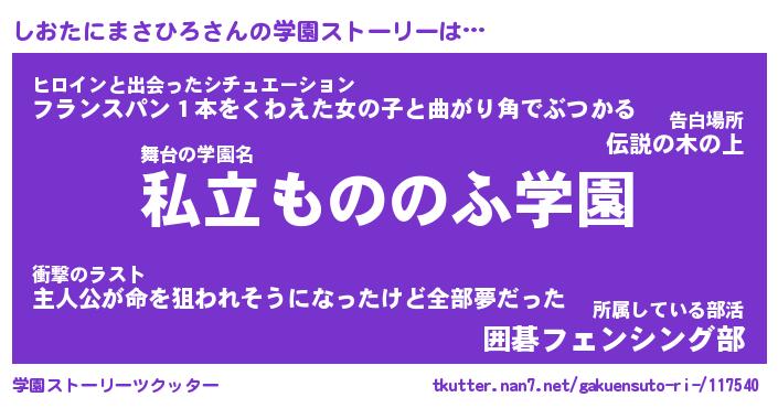 | 男性向けラノベタイトル風あだ名 | 『しおたにまさひろの憂鬱』 |