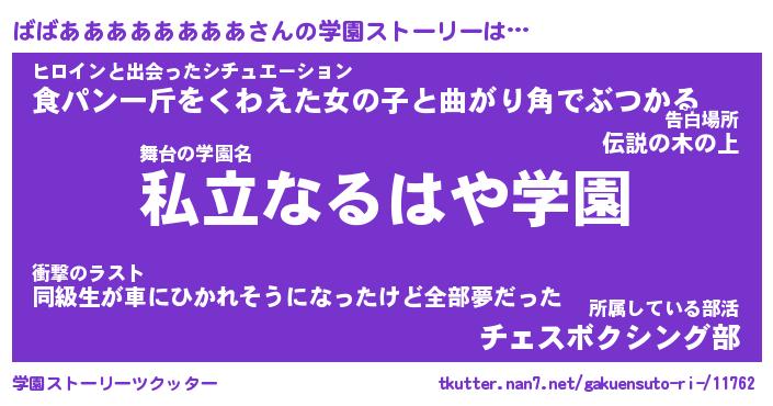 | 女子向けラノベタイトル風あだ名 | 『(仮)ばばああああああああのやんごとなき事情』 |