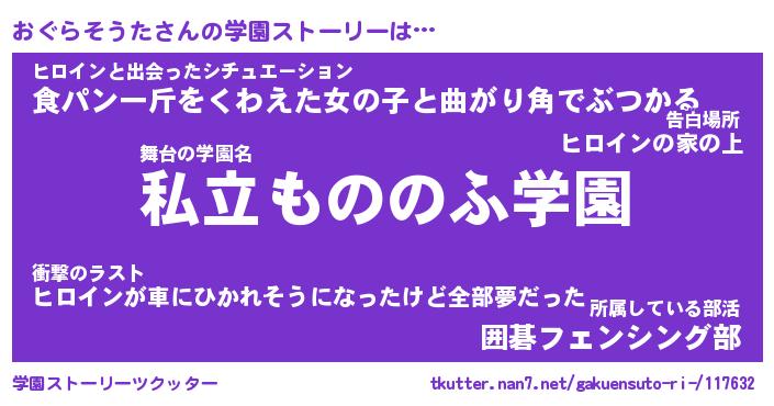 | 女子向けラノベタイトル風あだ名 | 『おぐらそうた姫と円卓の騎士』 |
