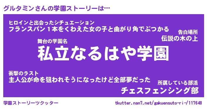 | 女子向けラノベタイトル風あだ名 | 『(仮)グルタミンのやんごとなき事情』 |