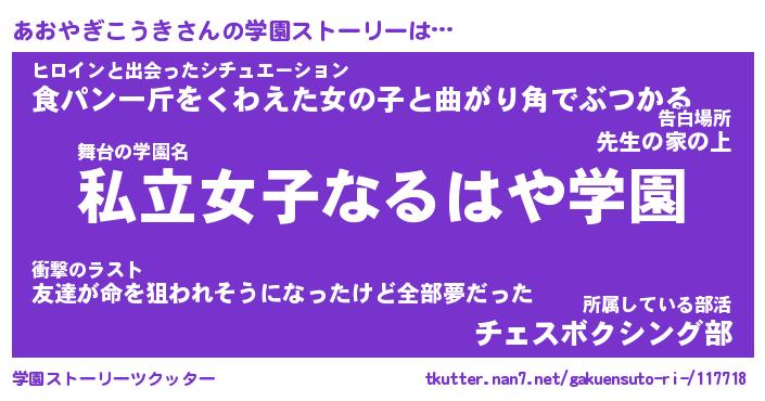| 肩書あだ名 | 『あおやぎこうき御曹司』 |