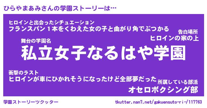 | 女子向けラノベタイトル風あだ名 | 『誰かこのひらやまあみを説明してください! ~契約から始まるウェディング~』 |
