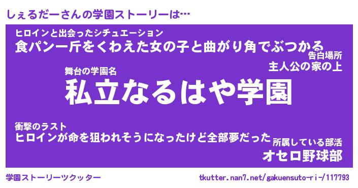 | 女子向けラノベタイトル風あだ名 | 『(仮)しぇるだーのやんごとなき事情』 |