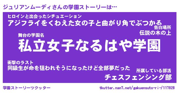 | 女子向けラノベタイトル風あだ名 | 『ジュリアンムーディ姫と円卓の騎士』 |