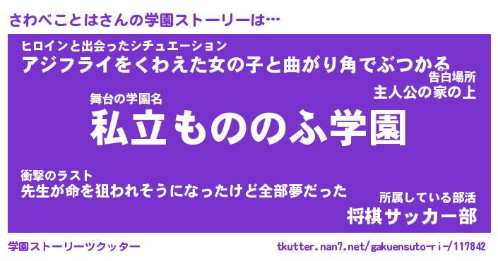 | 男性向けラノベタイトル風あだ名 | 『さわべことはの憂鬱』 |