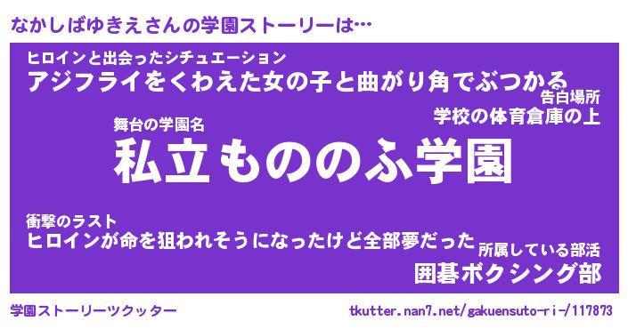 | 女子向けラノベタイトル風あだ名 | 『(仮)なかしばゆきえのやんごとなき事情』 |