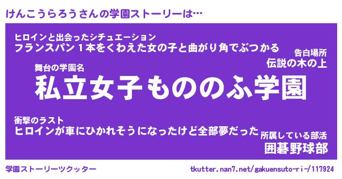 | 男性向けラノベタイトル風あだ名 | 『ケンコウラロウアートオンライン』 |