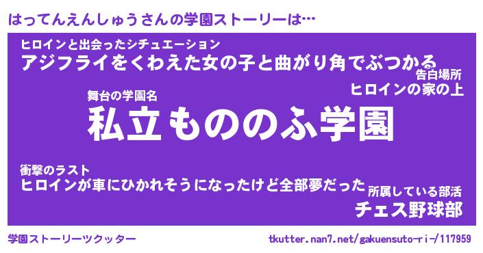 | 男性向けラノベタイトル風あだ名 | 『はってんえんしゅうの憂鬱』 |