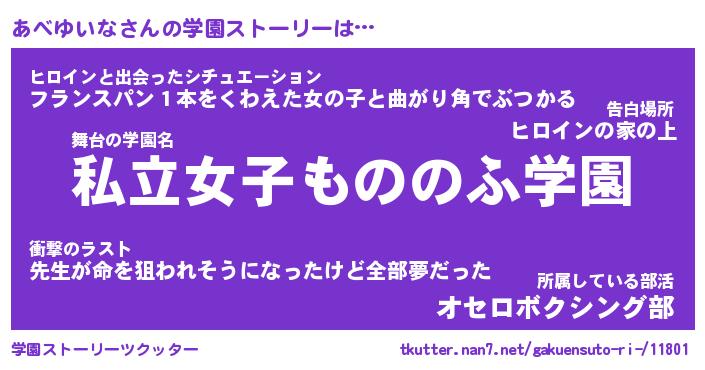 | 男性向けラノベタイトル風あだ名 | 『アベユイナアートオンライン』 |