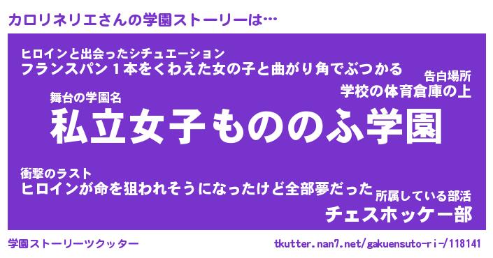| 男性向けラノベタイトル風あだ名 | 『カロリネリエアートオンライン』 |
