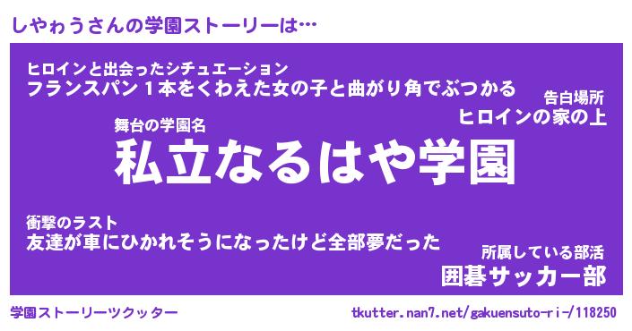 | 男性向けラノベタイトル風あだ名 | 『しやゎうの憂鬱』 |