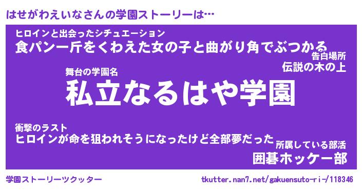 | 伝説のあだ名 | 『伝説のスナイパーはせがわえいな』 |