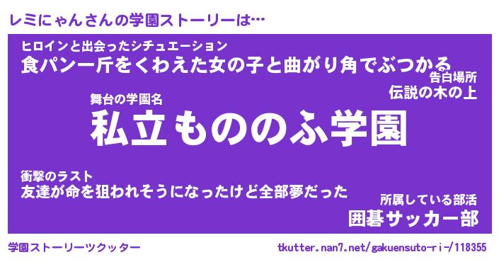 | 男性向けラノベタイトル風あだ名 | 『レミにゃんの憂鬱』 |