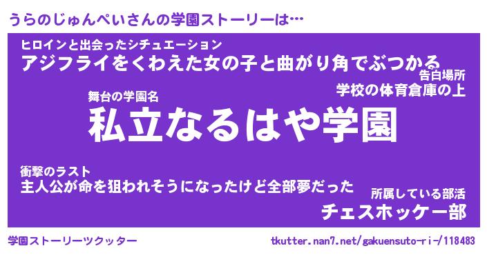 | 男性向けラノベタイトル風あだ名 | 『うらのじゅんぺいの憂鬱』 |