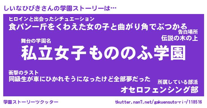 | ヒーロー風カッコイイあだ名 | 『スーパーシイナヒビキ』『暗黒騎士シイ』 |