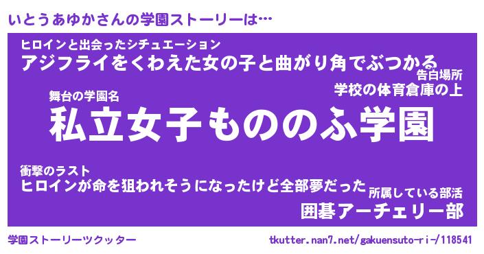 | ヒーロー風カッコイイあだ名 | 『スーパーイトウアユカ』『天弓騎士イト』 |