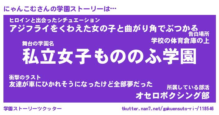 | ヘコむあだ名 | 『にゃにゅー』『牛乳』『にゃぷりん』 |