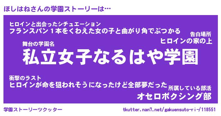 | ヒーロー風カッコイイあだ名 | 『スーパーホシハネ』『天弓騎士ホシ』 |