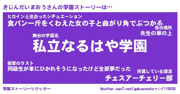 | 女子向けラノベタイトル風あだ名 | 『きじんだいまおう姫と円卓の騎士』 |