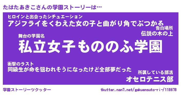 | 女子向けラノベタイトル風あだ名 | 『誰かこのたはたあきこを説明してください! ~契約から始まるウェディング~』 |