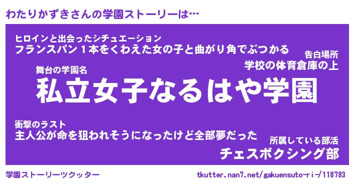 | ヒーロー風カッコイイあだ名 | 『スーパーワタリカズキ』『幻影騎士ワタ』 |