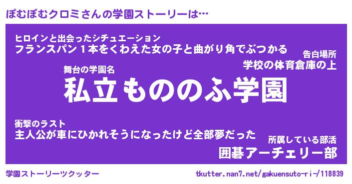 | 男性向けラノベタイトル風あだ名 | 『ぽむぽむクロミの憂鬱』 |