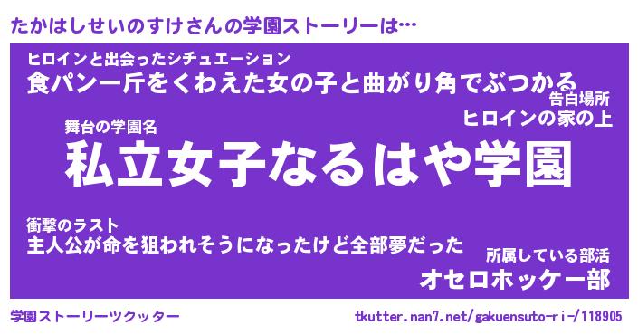 | 女子向けラノベタイトル風あだ名 | 『たかはしせいのすけ姫と円卓の騎士』 |