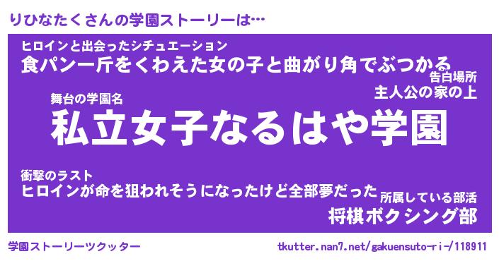 | ヒーロー風カッコイイあだ名 | 『スーパーリヒナタク』『銀牙騎士リヒ』 |