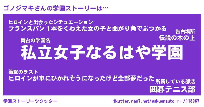 | ファンタジー風あだ名 | 『ゴノフェル』『エターナルゴノジマキー』 |