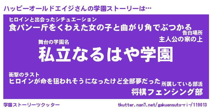 | 女子向けラノベタイトル風あだ名 | 『(仮)ハッピーオールドエイジのやんごとなき事情』 |