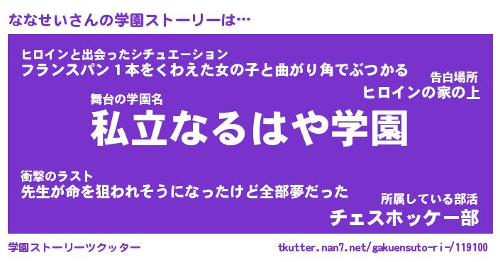 | 肩書あだ名 | 『ななせい社長令嬢』『ななせい大統領』 |