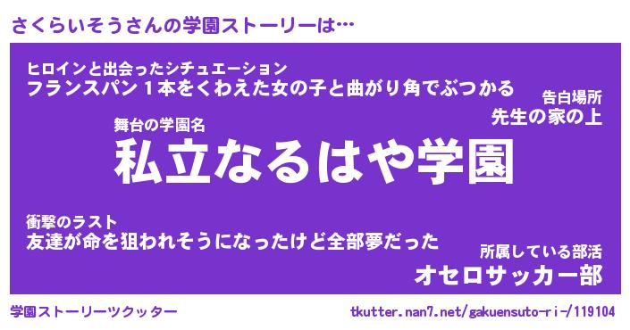 | 男性向けラノベタイトル風あだ名 | 『さくらいそうの憂鬱』 |