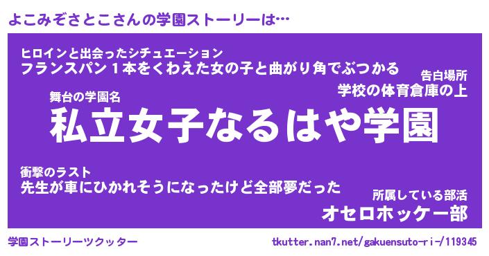 | 伝説のあだ名 | 『封印されしスナイパーよこみぞさとこ』 |