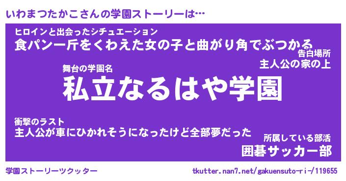 | 肩書あだ名 | 『いわまつたかこ店長』 |